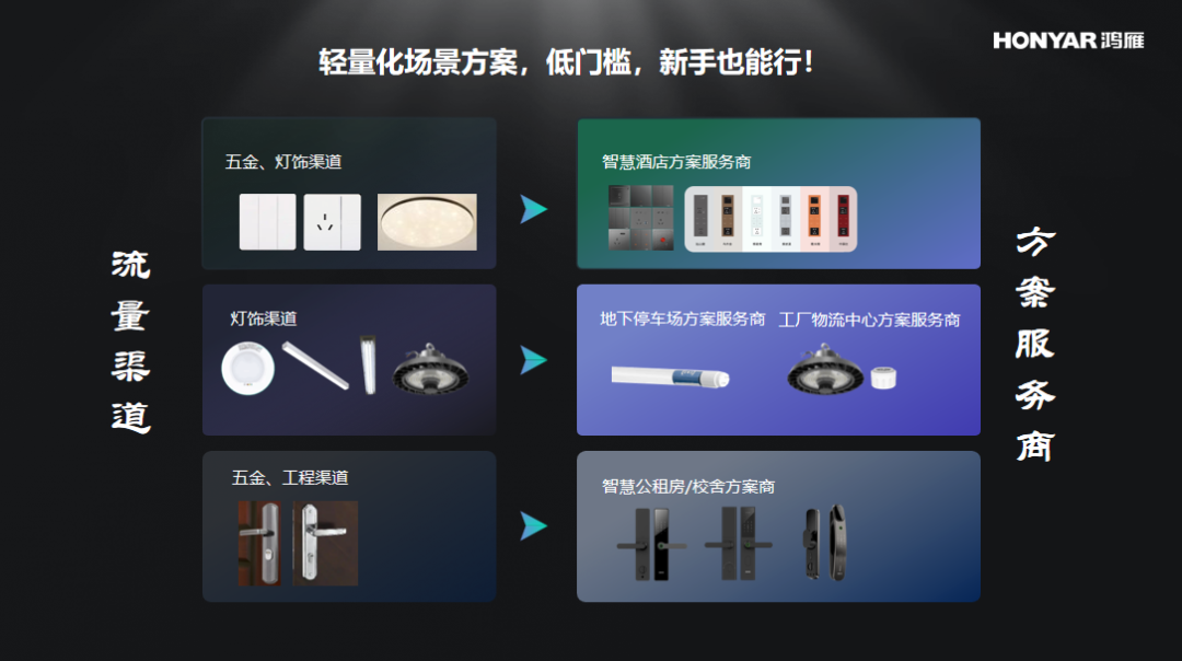 在智能新品发布环节,鸿雁物联应用研发部产品经理陈彦彤发表了《从“卖单品”到“赢方案”,鸿雁数字化场景方案》的主题演讲,系统展示了鸿雁在智慧酒店、地下停车场、工厂仓储、公租房等垂直领域的数字化场景解决方案。
